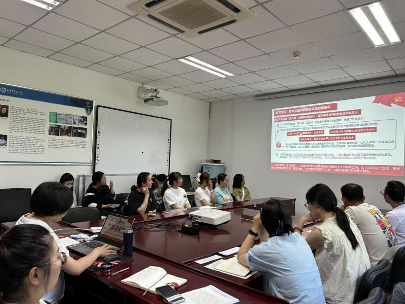 首先,支部书记张薇老师讲党课,将“从百年党史看自我革命”讲授内容分为“打铁必须自身硬是马克思主义政党的内生特质;百年党史有六次最具历史意义的自我革命;刀刃向内的自我革命永远在路上;科研学习中的自我革命”四个模块进行详细阐释。历史是最好的老师,中国共产党一百年的历史就是一部勇于刀刃向内的自我革命,不断炼就“打铁必须自身硬”功夫。要坚持常学常新,从党走过的艰辛历程中汲取信仰的力量、查找党性的差距、校准前进的方向。最后,张薇老师结合实际,讲到了科研学习中的自我革命。做科研,功利心态要不得;做科研,三心二意不可取;做科研,懂得方法很重要,告诉同学们科研人常常面对很多困难、挫折,大家务必要平心静气、努力拼搏、坚持到底,勇于自我革命。