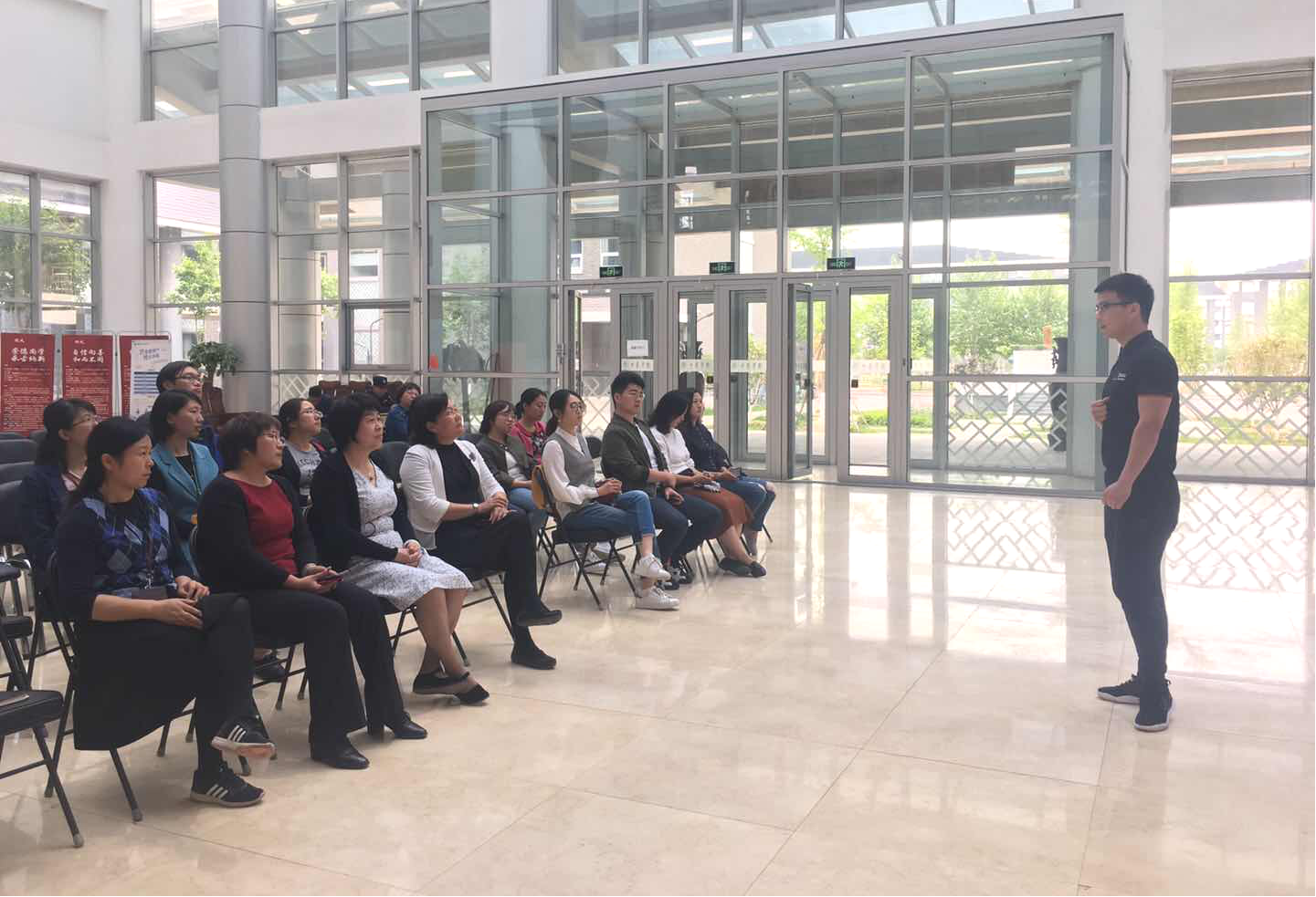 5月8日中午,yl23455永利集团工会“守护健康,你我同行”康复课活动在良乡校区中药楼C座一层大厅如期举行。活动由国家二级运动员、国家职业资格认证高级教练陈鹏,为老师们带来了一场理论兼实操的康复培训课。公司工会常务副主席艾路,公司刘雯华、魏胜利、马群、孙志蓉、杜红等老师积极参加了此次活动。