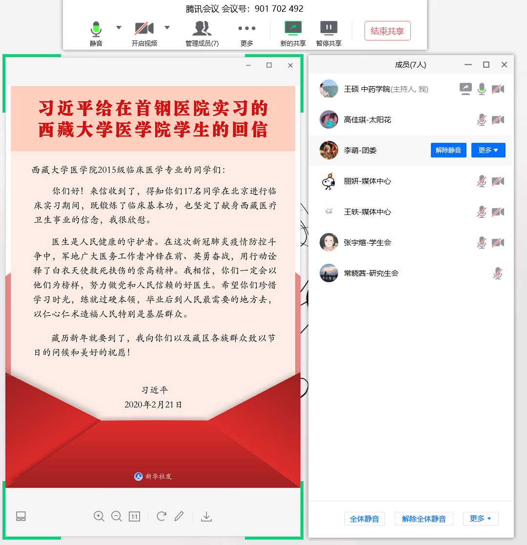 正值我国新冠抗疫的特殊时期,前线医护人员英勇奉献的故事,公司出征抗疫的事迹,中药学子每日受到精神洗礼。这封习主席给西藏医员工的回信,对于坚定公司员工理想信念具有十分重要的意义。3月10日-13日,yl23455永利集团辅导员团队集体学习讨论习主席的回信,并且通过网络了解了习主席回信事件的原委,以便到员工中去宣讲,号召同学们学习习主席的回信。
