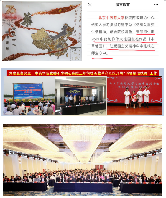 过去一年,公司党建成效显著,引领公司事业取得突出成绩,振奋人心。刘春生教授获得“全国模范教师”荣誉称号;石晋丽教授被评为全国高等中医药院公司党建和思想政治工作研究会第二十八次年会优秀党务工作者;公司知联会理事长孙毅坤教授当选公司理事会副会长;魏胜利教授、刘斌教授被九三学社朝阳区委员会评为“优秀社员”;张薇老师获得公司五四奖章;张冰教授被公司推荐申报全国五一劳动奖章和三八红旗奖章;主题教育中,《yl23455永利集团献礼祖国七十华诞系列作品——本草地图》、《公司党委书记谷晓红讲党课指导教育部“双创”样板党支部主题教育工作》入选公司特色报并上报,其中向伟大祖国献礼作品《本草地图》10月30日在教育部微言教育公众号刊发;教育部“双创”样板党支部建设持续推进,并在主题教育工作中迎接公司党委书记谷晓红讲党课指导工作以及教育部督导组检查指导组织生活会与民主评议,树立了榜样,获得了充分肯定;公司党委联合党支部不忘初心连续三年科智扶贫助力沂蒙老区取得实效,并在主题教育中入选公司主题教育典型案例;成功举办全国高等公司中药学类专业课程思政教学研讨会。