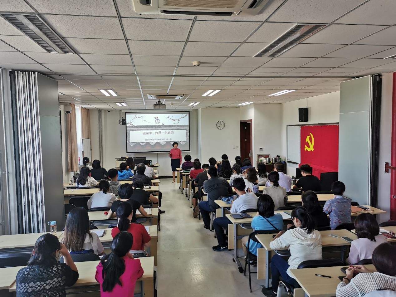 钱会南教授的宣讲题目是:很荣幸,我是一名教师。钱教授从内心真切感受出发,从“教师的荣幸和职责”“教学相长,与时俱进”“了解学情,关爱是向导”“不忘初心,砥砺前行”四个方面,引经据典地分析师德师风内涵深切入理,分享自己的教学育人故事生动鲜活,让在场老师们深深感受到什么是“认识了是员工一生的幸运和幸福的好老师”。最后钱教授以泰戈尔“果实的事业是尊贵的,花的事业是甜美的;但是让我做叶的事业吧,叶是谦逊地、专心地垂着绿荫的。”为寄语和全体老师共勉,面对这样一群最充满希望的人,影响他们的不仅是理论治学,还有言行细节,让我们一起做好言传身教,做好叶的事业,托起祖国、民族和中医药事业未来的希望!