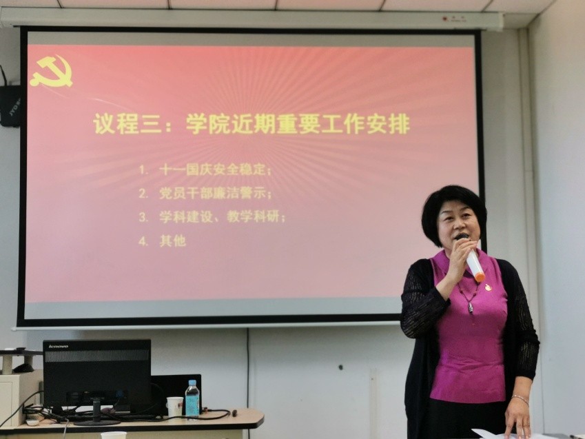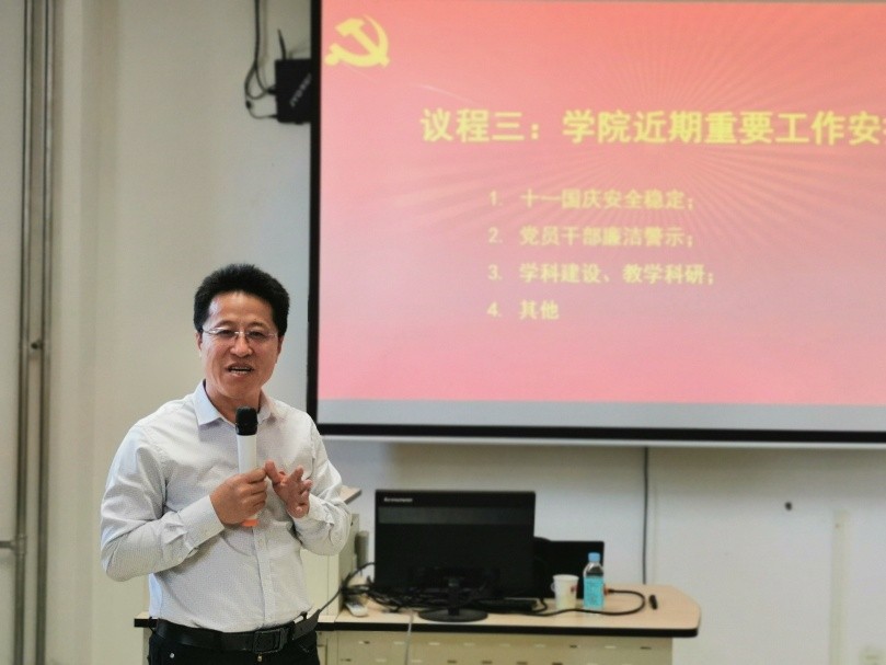 随后召开的全院大会包括新入职教职工见面会、国庆期间安全稳定工作、党员干部廉洁警示教育、教学科研与团队建设四个议题。今年新入职的老师一一与大家见面并做自我介绍,因带军训未能参会的两位老师也通过视频的方式和大家认识。