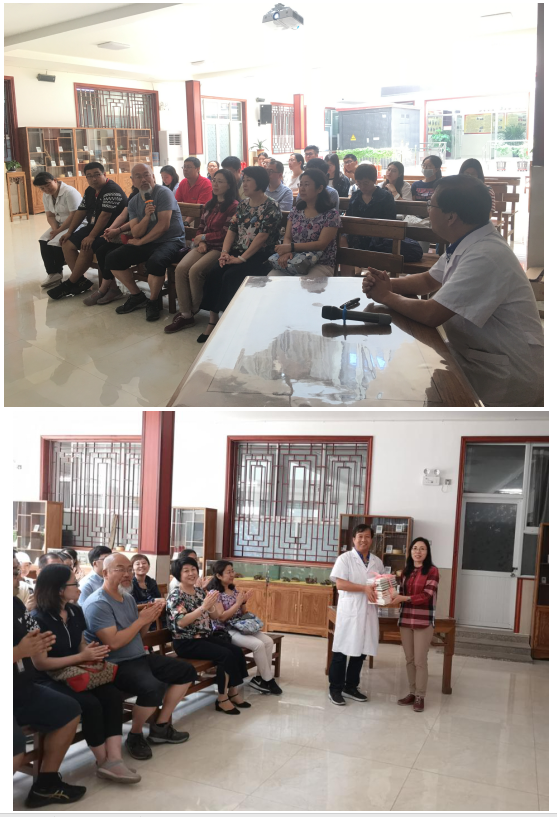 王经理为大家详细汇报了金海中医医院“医养康”的特色、公益组织的性质、三级医疗机构的作用、经理查房的制度、药品捐赠与中医药启蒙教育的行动,以及“理念、质量、财务、技术”四大关键。金海中医医院目前包括了门诊区、日间照料区、康复区、养老区四个区域,还具备党建活动室和书画文娱设施,同时保障身体的医疗、养护、康复以及精神生活的丰富、提升。遇到无法诊治的情况时,在对社区村民进行急性处理后迅速转接到上级医院,上级医院诊治后回到中心来进行基层康养,发挥着三级医疗机构维护百姓健康的重要中介作用。坚持做好四个关键,即:中医理念;经理每日亲自例行查房;从源头保证药材、食材的质量;挣的每一分钱都实实在在地花在刀刃上,用于治病救人和医院发展;同时不断提高专业技术和自身修养。对百姓只收成本钱,只要能够达到理想效果就尽量少花钱,在自己破格提职后仍然只收取普通挂号费,让百姓都能看上病、看好病,把老人当自己的老人,这是对医院公益性质的最深切体现。对于这四点,王经理坚定地说:“把握住这四点,就能传承下去,一定不能商业运营,否则必败!”