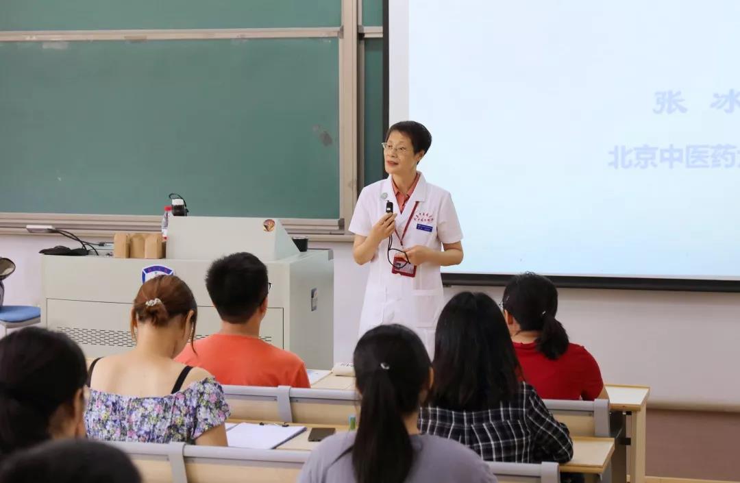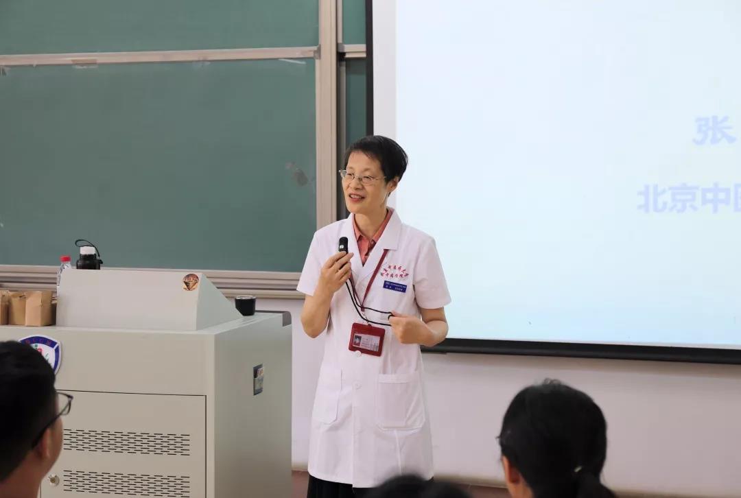 张冰教授结合自己数十年临床实践经历,对孙思邈《大医精诚》篇中的关键语句进行了解读,深刻阐发了“大医精诚”的时代意义。她列举了多个亲身诊疗病案作为案例,将理论和实践紧密而生动地结合起来,同学们听得如痴如醉。她深情回忆了恩师、国医大师颜正华的行医事迹,总结了颜老正人正事,仁人仁慈,以大医为愿,以弘扬中医药为业和“正、仁、医、药”的医德风范。
