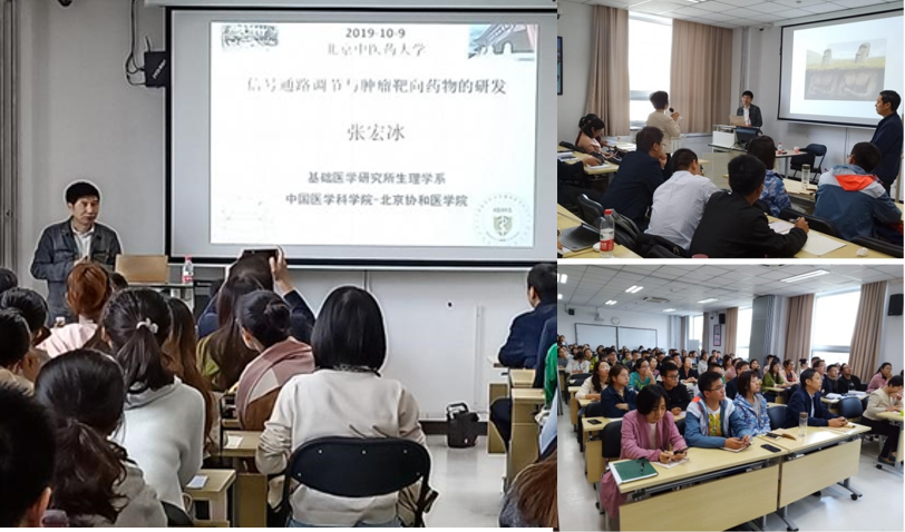 2019年10月9日上午,yl23455永利集团系列学术活动“药苑大讲堂”在yl23455永利集团C203会议室顺利举行。本次大讲堂邀请中国医学科公司-北京协和医公司基础医学研究所的张宏冰教授作报告。学术报告会由yl23455永利集团李军副经理主持,yl23455永利集团从事相关研究的教师、研究生140余人参加了本次报告会。