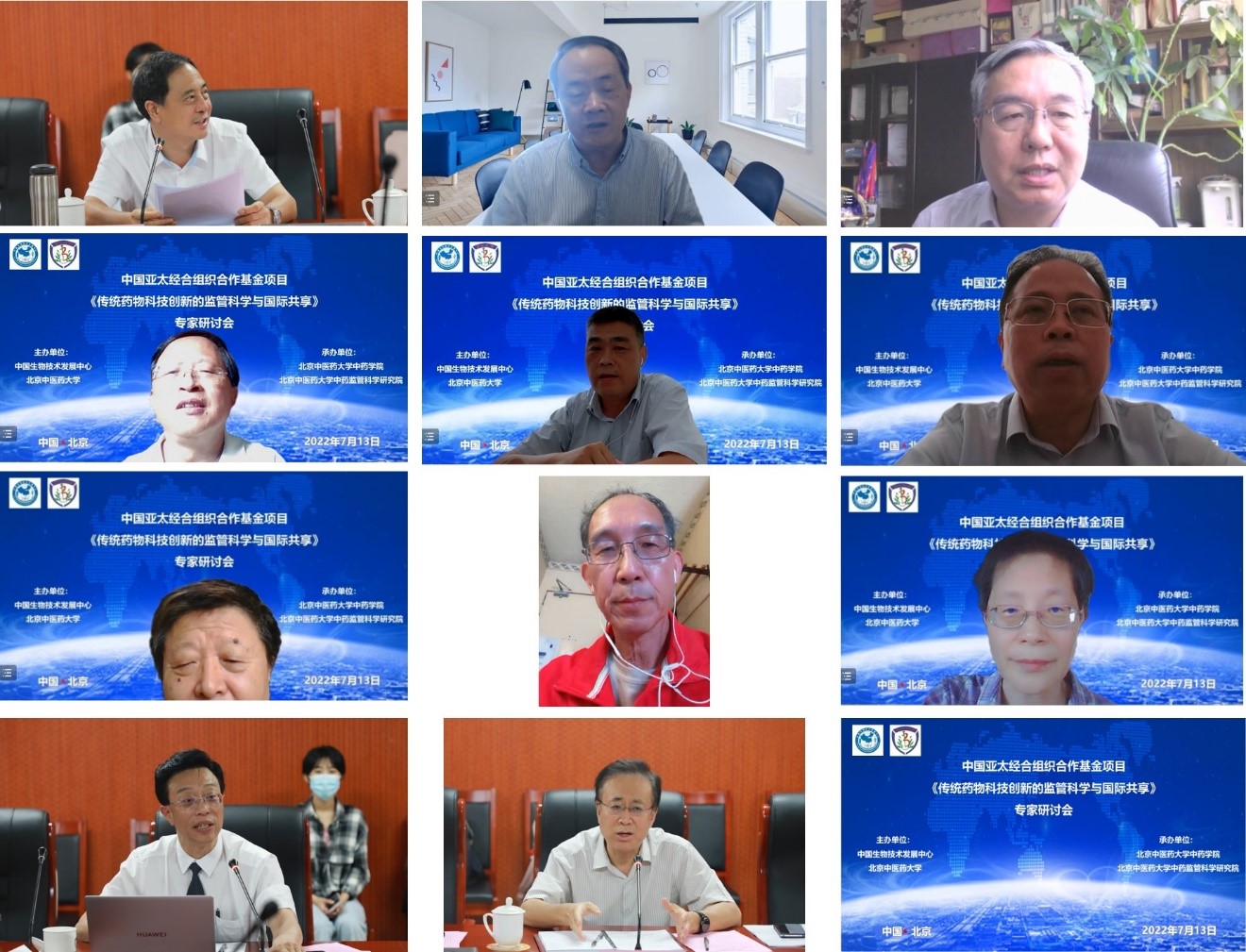2022年7月13日,中国APEC合作基金“传统药物科技创新的监管科学与国际共享”项目专家研讨会以线上线下结合的方式在公司良乡校区举办。会议由科技部中国生物技术发展中心和yl23455永利共同主办,公司yl23455永利集团和中药监管科学研究院共同承办。本次会议邀请到“人民英雄”张伯礼院士以及来自全国中医药领域的15位领导专家就“传统药物科技创新的监管科学与国际共享”国际研讨会主题及研究报告进行研讨。会议由yl23455永利集团雷海民经理主持。