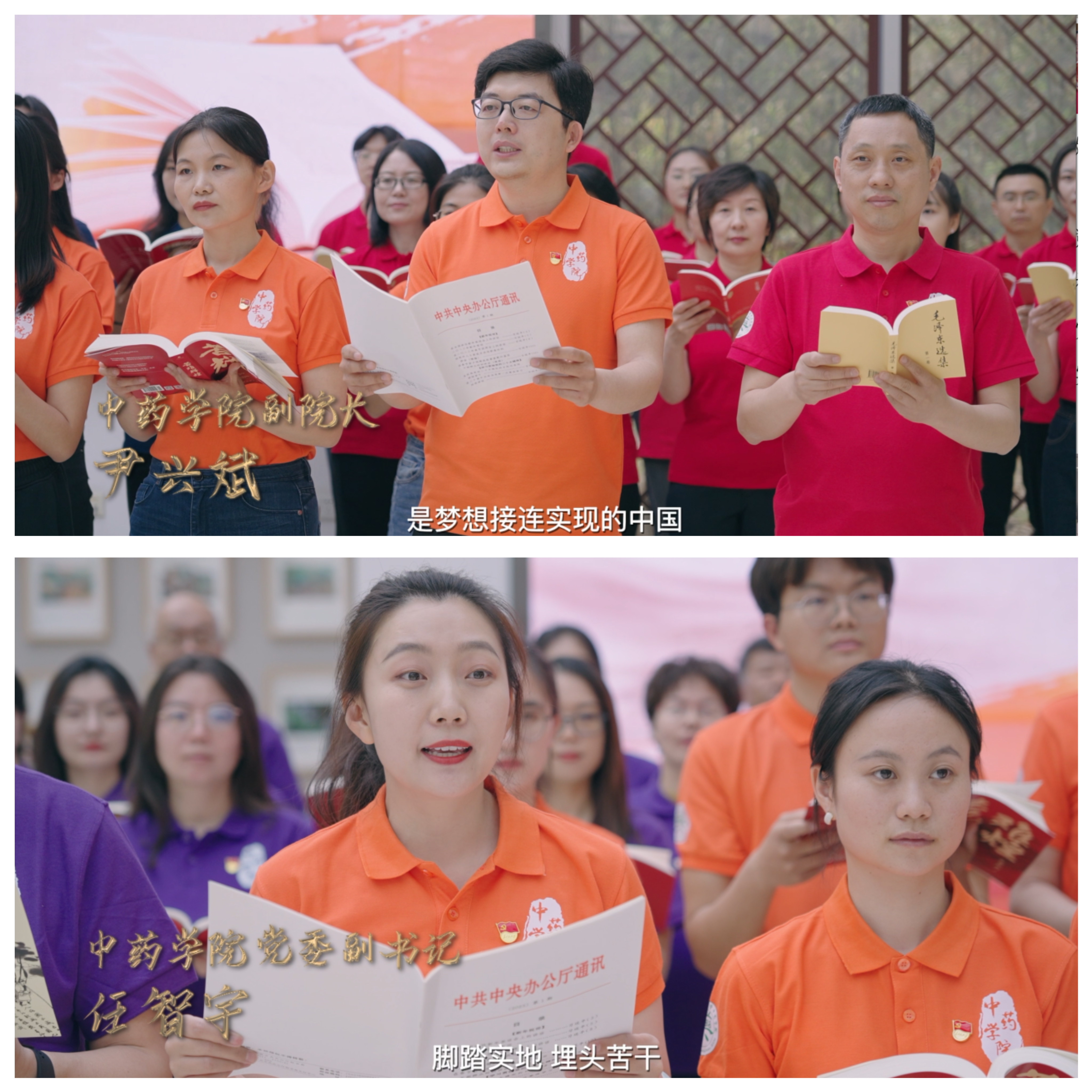 第一篇章“星火燎原”。李军副经理带领数理系党支部、综合管理办公室党支部、中药制药研究生党支部、中药信息学研究生党支部共读《毛泽东选集—星星之火,可以燎原》,感悟党在艰苦奋斗时期用点点星火凝聚起来的伟大力量;中药制药系党支部、实践教学中心党支部、中药炮制系党支部、中药信息学系党支部共读《可爱的中国》,致敬纯粹的中国共产党人和伟大的民族英雄。
