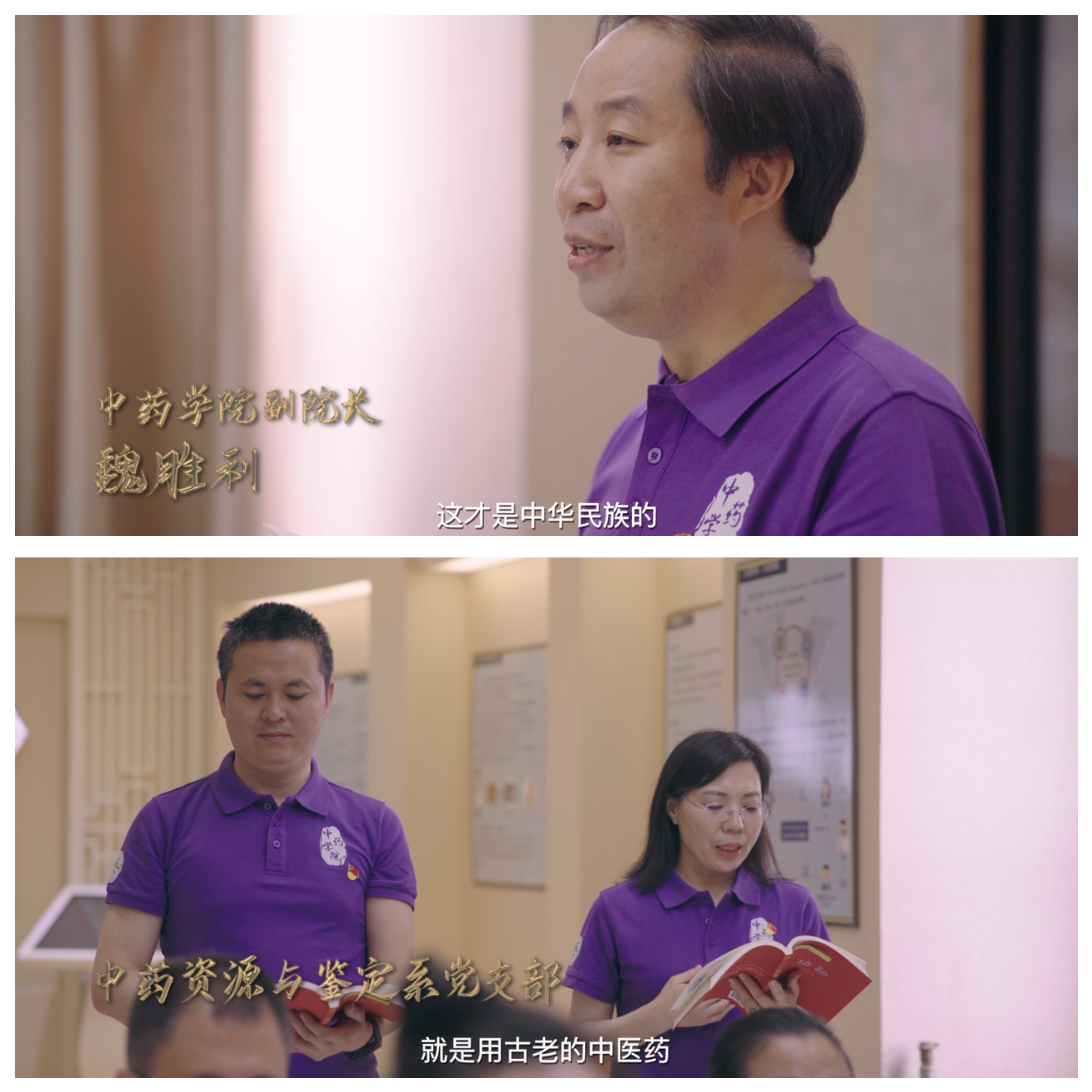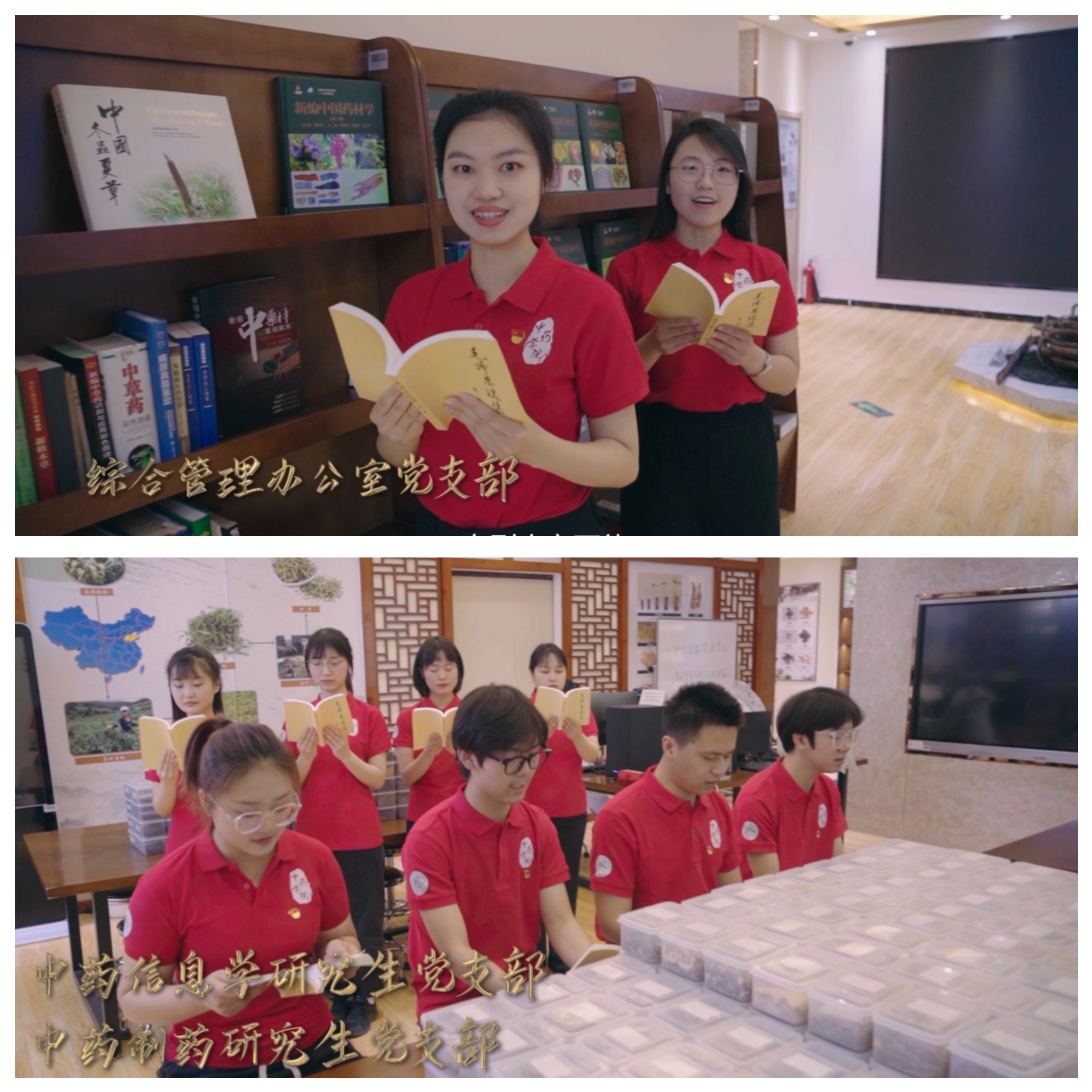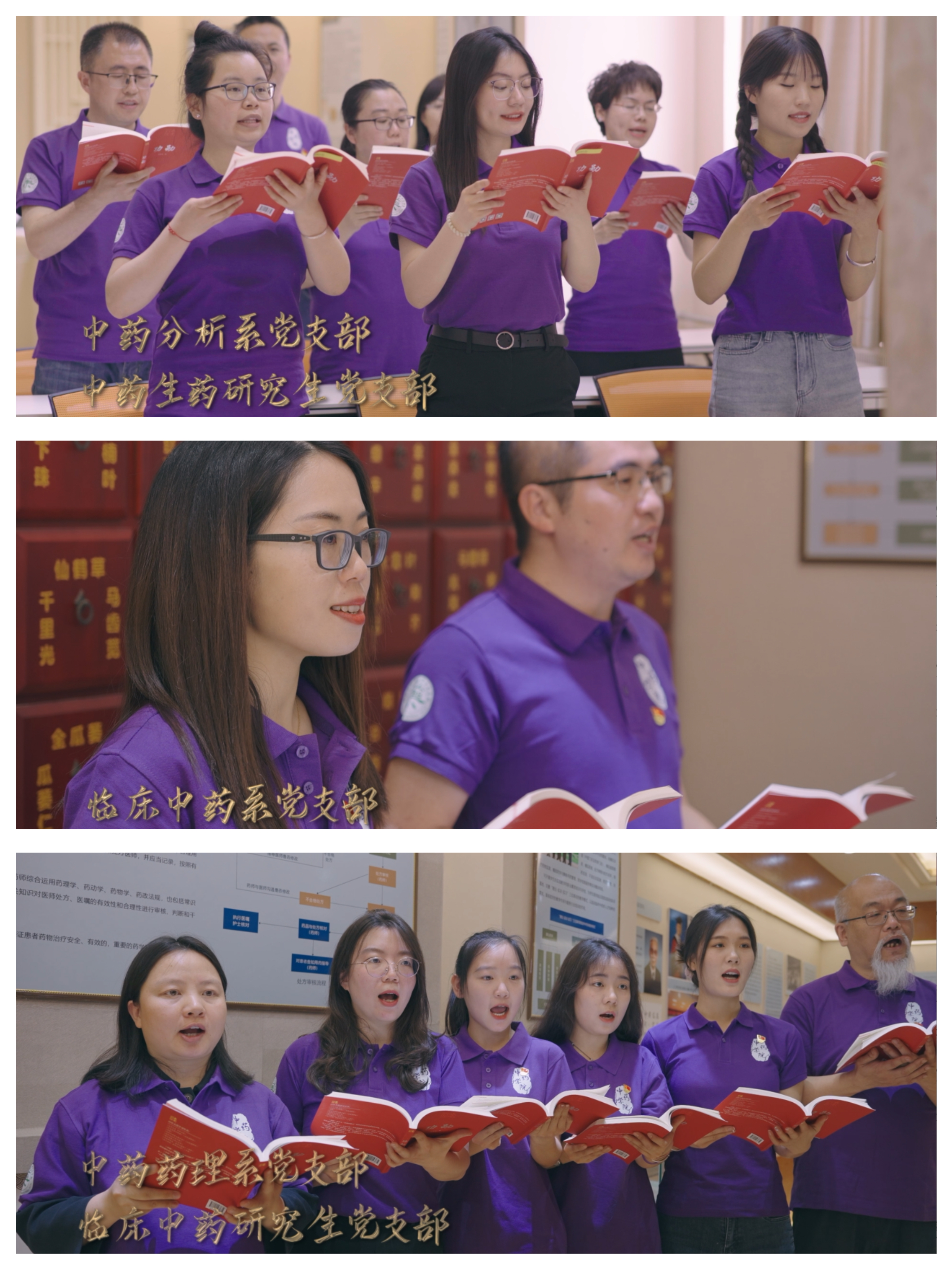 第二篇章“奋进征程”。魏胜利副经理领读《中华民族的人格》,用激昂而又坚定的声音展现中华民族的真人格、真精神。中药资源与鉴定系党支部、中药分析系党支部、中药生药研究生党支部、临床中药系党支部、中药药理系党支部、临床中药研究生党支部共读《功勋—屠呦呦:与青蒿结缘,用中医药造福世界》《功勋—钟南山:大医精诚写大爱》,学习典型、开拓进取;中药化学系党支部、中药化学研究生第一党支部、北京中医药研究公司党支部共读《战疫口述实录》,表达对中医药工作者的崇敬之情。
