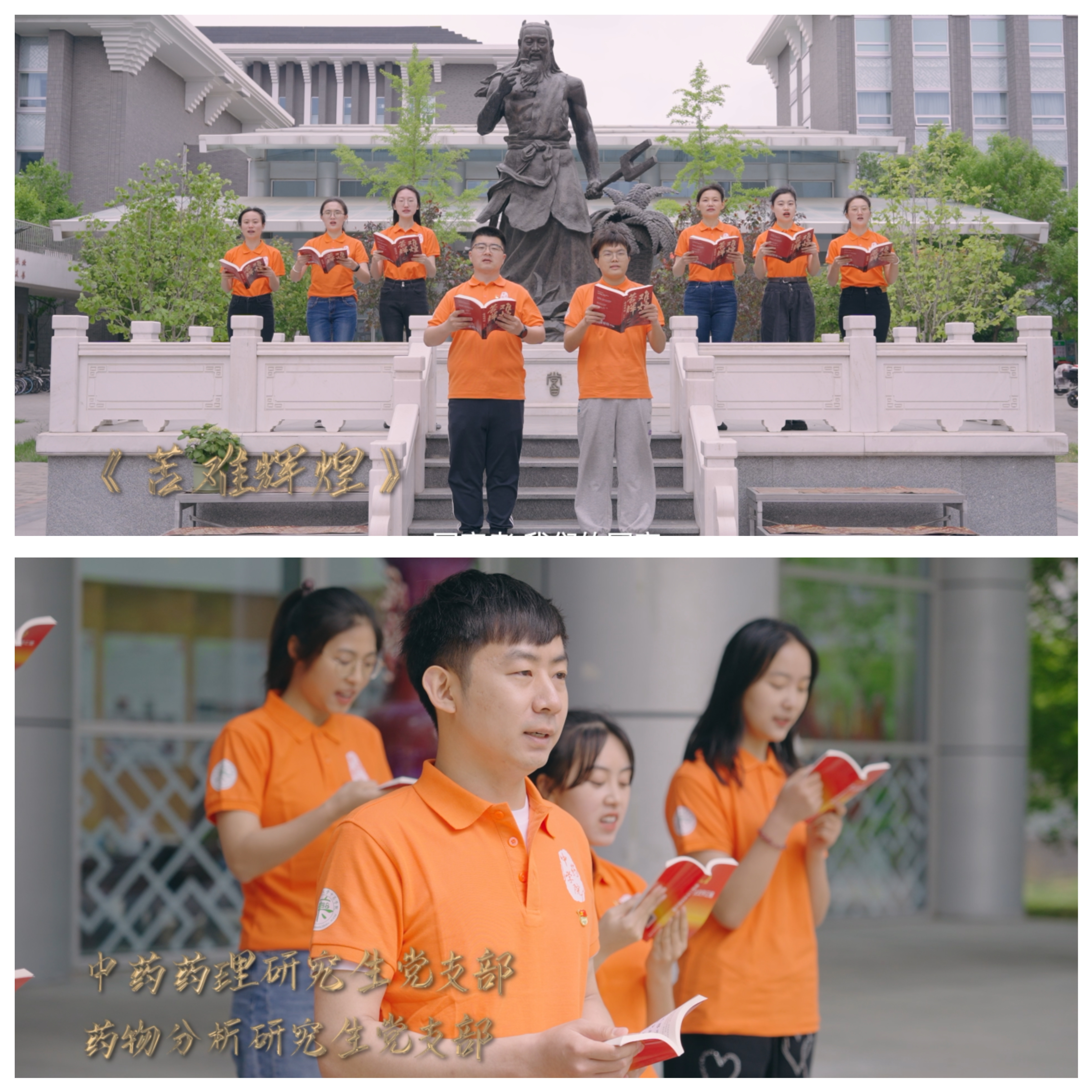 第三篇章“共向未来”。中药化学研究生第二党支部、制药本科生党支部共读《苦难辉煌》,以“天下者我们的天下,国家者我们的国家,社会者我们的社会”,彰显了青年学子的青春热血;中药药理研究生党支部、药物分析研究生党支部共读《中国共产党第二十次全国代表大会报告》,许下让青春在全面建设社会主义现代化国家的火热实践中绽放绚丽之花的誓言。