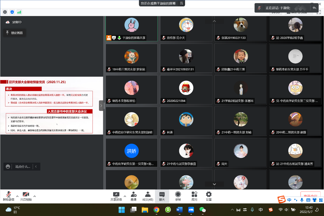 党员发展是党建工作至关重要的一环。为进一步规范员工党员发展流程,切实提升党建工作水平,2022年5月7日中午12:30,公司党委协同yl23455永利集团员工党建联合会组织召开员工党员发展工作培训会。yl23455永利集团各员工党团支部共计40余名干部参加活动。会议由yl23455永利集团专职辅导员、员工党建联合会秘书长周天老师主持。