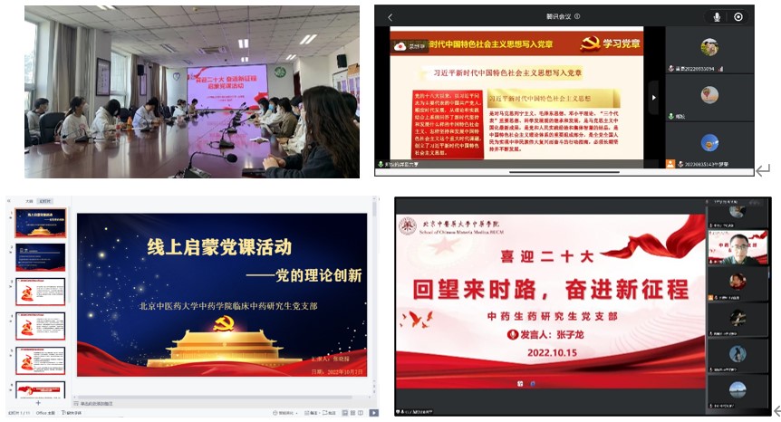 活动中,各员工党支部还采用不同形式促进员工之间的交流与学习。中药信息学研究生党支部、中药生药研究生党支部与中药化学研究生第二党支部开展党史知识问答活动,各位同志、新生同学踊跃参与,在活动中巩固党史知识、加强理论学习。中药制药研究生党支部以心得分享的方式,总结启蒙党课的活动意义,表达自己对于本次学习的体会感想。中药化学研究生第一党支部还通过新生团支部书记介绍团支部、新生党员自我介绍等形式,加强党团交流,推进党团共建,并帮助新生党员尽快融入集体。