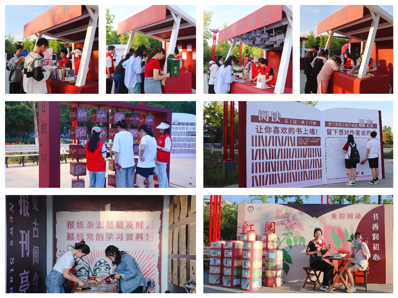 光影“阅”动展台以微缩景观形式还原yl23455永利集团“红·阅”党员读书角,引导师生开展现场阅读打卡;书签赏“阅”展台结合美育,以“阅读美术馆”形式带领师生现场制作书签,在阅读中提升审美能力;“阅”览群书展台以图书漂流方式给全校师生提供了图书交换空间,让书籍在流动中传递知识、传播文化;回“阅”历史展台以党史上的今天与经典文献为脉络,选取366个党史事件和366个文献金句制作成日历,带领师生全面回顾党的伟大历程和阅读经典文献;时空“阅”章展台由好书推荐和与作者进行时空对话两部分组成,引导师生在与作者的文字交流中深度分享好书;“阅”然纸上展台选取王尔琢、黄继光、陈觉、冷少农等九封红色家书与傅雷、曾国藩等5封经典家书进行展示,引导师生学习并感受典型人物的家国情怀以及纸短情长,并现场撰写书信寄托情思;日积“阅”累展台选取党史党建、党的二十大报告、中医药文化相关题目组成百问百答,带领师生在答题中学习党史与中医药知识;览古“阅”今展台以报刊亭形式,集中展示有标志性重大事件的老报纸,并选取开国大典、东方红一号上天、香港回归、公司10秒中医药体验馆等国家、公司重大事件制作拼图,引导师生在互动中学习党史、国史、校史。