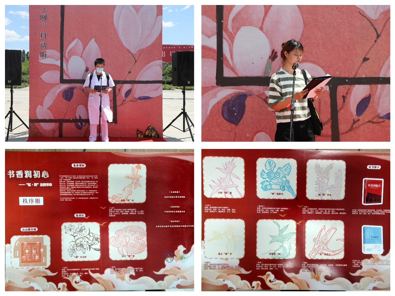 “阅”耳动听互动区为展示台,引导师生现场诵读经典篇目或畅谈读书感受,以互动分享的形式带领师生走进一个又一个经典阅读场景;“阅”来“阅”兑互动区为兑奖台,活动选取了9味中药图案作为师生参与阅读体验活动的印章奖励,师生可通过集章学习相关中药的性味归经与功效,同时集满相应印章数可兑换精美奖品。