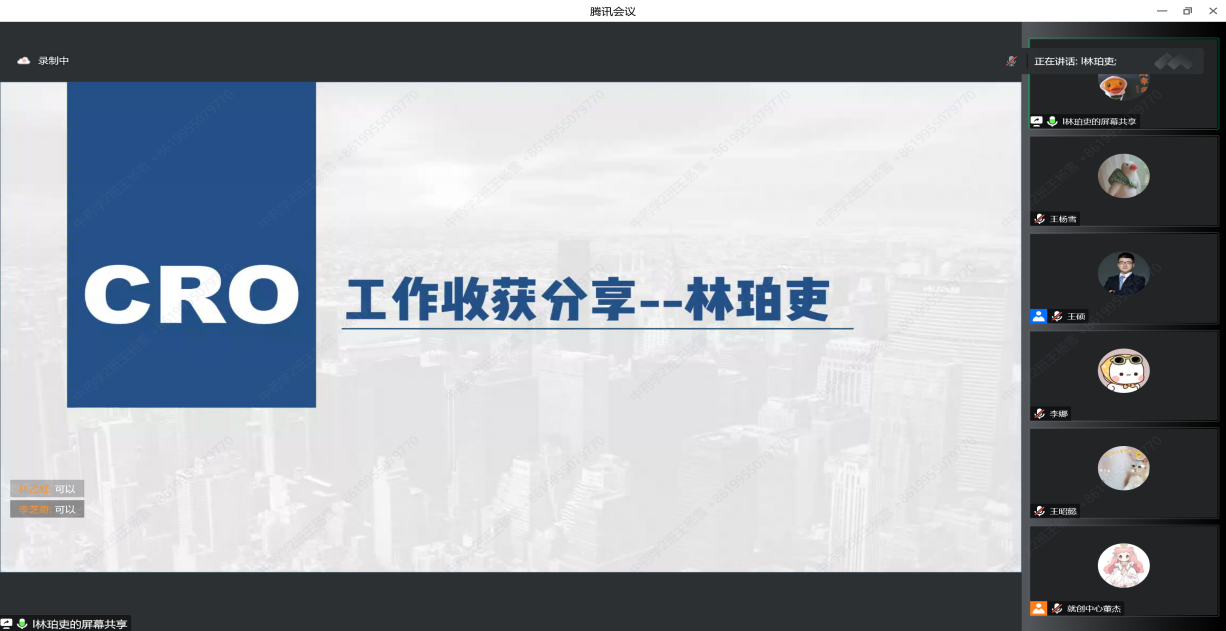 活动伊始,王硕老师做开场致辞后,三位嘉宾开始讲述在CRO行业工作的经历和感受。第一位李娜师姐,从公司的管理培训体系,员工技能学习,实验安全措施等方面讲述了她的工作内容和感受。第二位林珀吏师姐,分享了自己工作收获,并向大家分享表格数据,展示CRO公司行情以,叮嘱大家职业选择需要考虑自己的兴趣。第三位王昭懿师姐,分享了自己在研发部的日常,以及相关技能要求等。