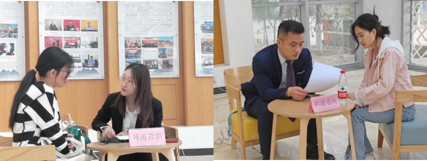 除此以外,活动特意设置的简历诊断台和职涯咨询台也得到了毕业生的欢迎。简历诊断咨询师、前程无忧校园招聘部经理陈雅馨建议毕业生制作简历时在保证真实性的基础上,尽量要突出亮点,高效抓住Hr的注意力;职涯咨询师、管理公司专职辅导员周磊则建议员工一定要早思考,早了解,早准备,早下手,才能更好地在职业生涯发展中抢占先机。