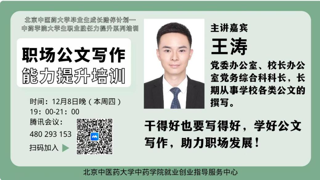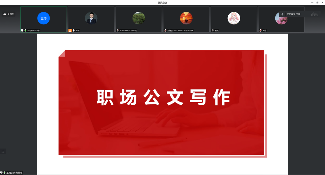 2022年12月8日,由yl23455永利集团主办,yl23455永利集团就业创业指导服务中心承办的yl23455永利毕业生成长陪伴计划、yl23455永利集团老员工职业胜任力提升系列培训的第3场活动顺利开展。本次活动聚焦职场公文写作能力提升,邀请到公司党委办公室、董事长办公室党务综合科科长王涛作为嘉宾进行主题分享,活动在公司专职辅导员、就业专员王硕主持下进行。