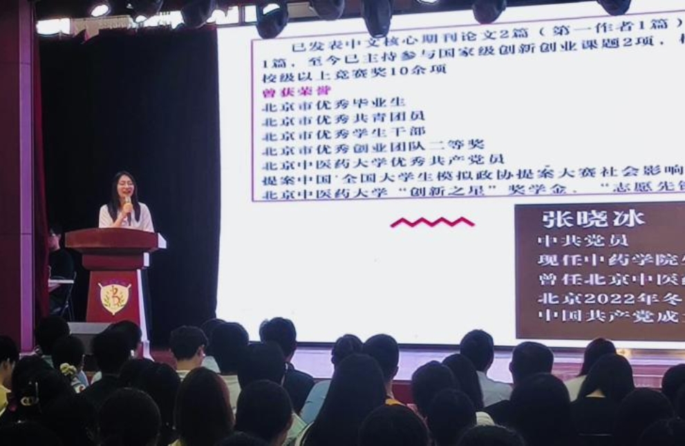 yl23455永利集团优秀员工代表,2018级中药卓越班毕业生、现2022级专硕班张晓冰同学,为新生们分享了自己在北中医五年的生活学习工作历程、收获与感悟,她鼓励学弟学妹们敢于去尝试大学里的各项活动,学习上早实验多实验反复试验,在浮躁的世界里,向下扎根,向上开花,成为一个自律优秀的人。