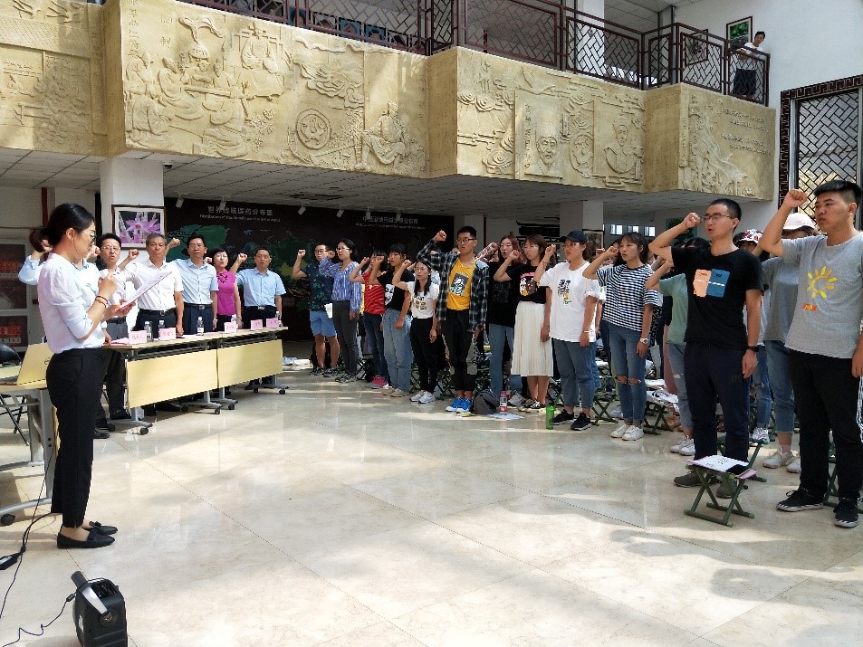 接下来,辅导员老师李阳带领全体yl23455永利集团2019级研究生响亮地以青春的名义做出了庄严的宣誓——《青春告白祖国》,并同唱校歌《承诺》。