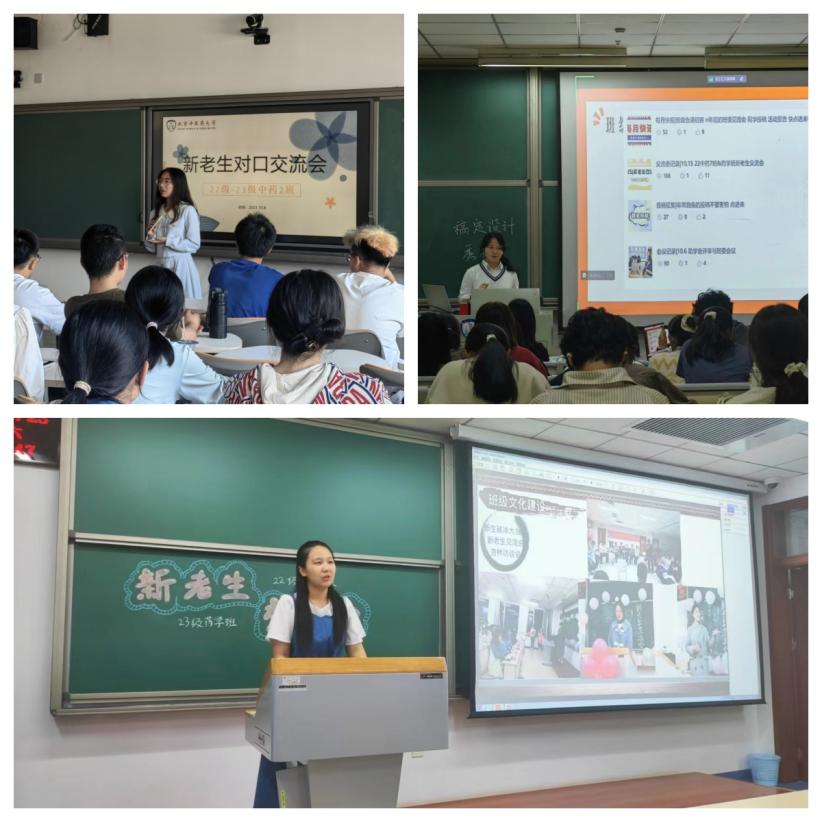 首先,2022级同学对2023级对口班的新同学们表示热烈欢迎,并从班级建设、学习方法、生活适应、时间管理等各方面与新生进行了经验分享交流。师兄师姐们鼓励新生进入大学后,多与老师、同学交流,多参加各类校园活动,拓宽自己的眼界,不断提高自己的综合素质。并结合自身专业、实际情况,确定目标,做好规划,珍惜时间,坚持不懈地付诸于行动。
