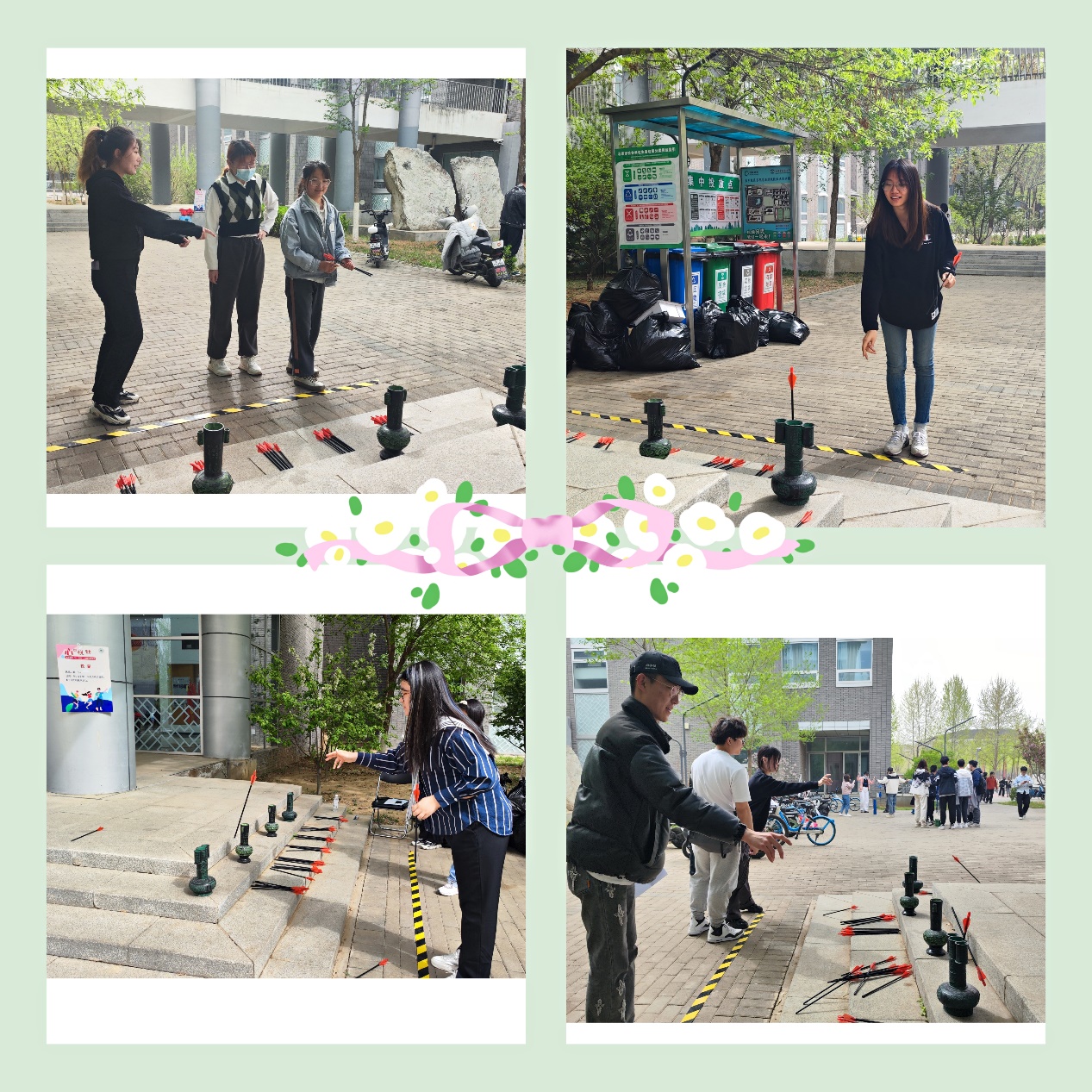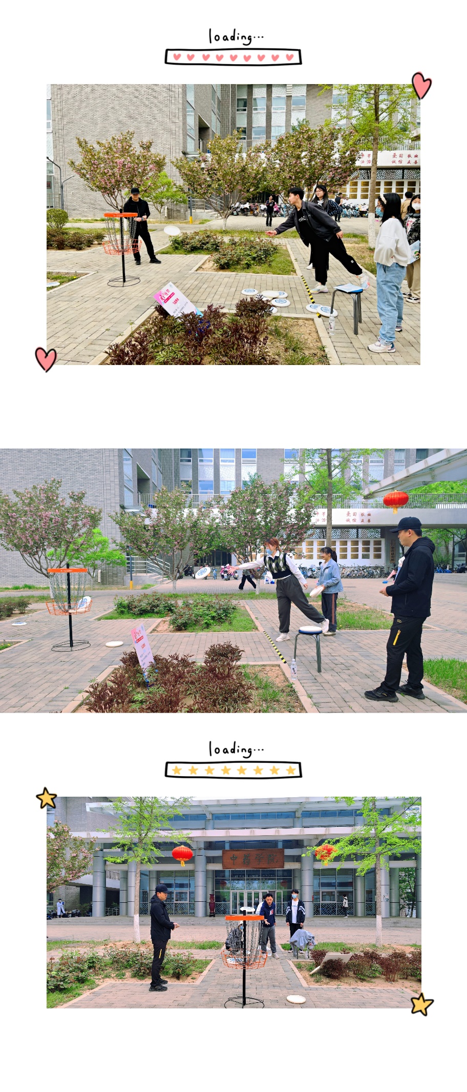 同学们一次次投掷飞盘,