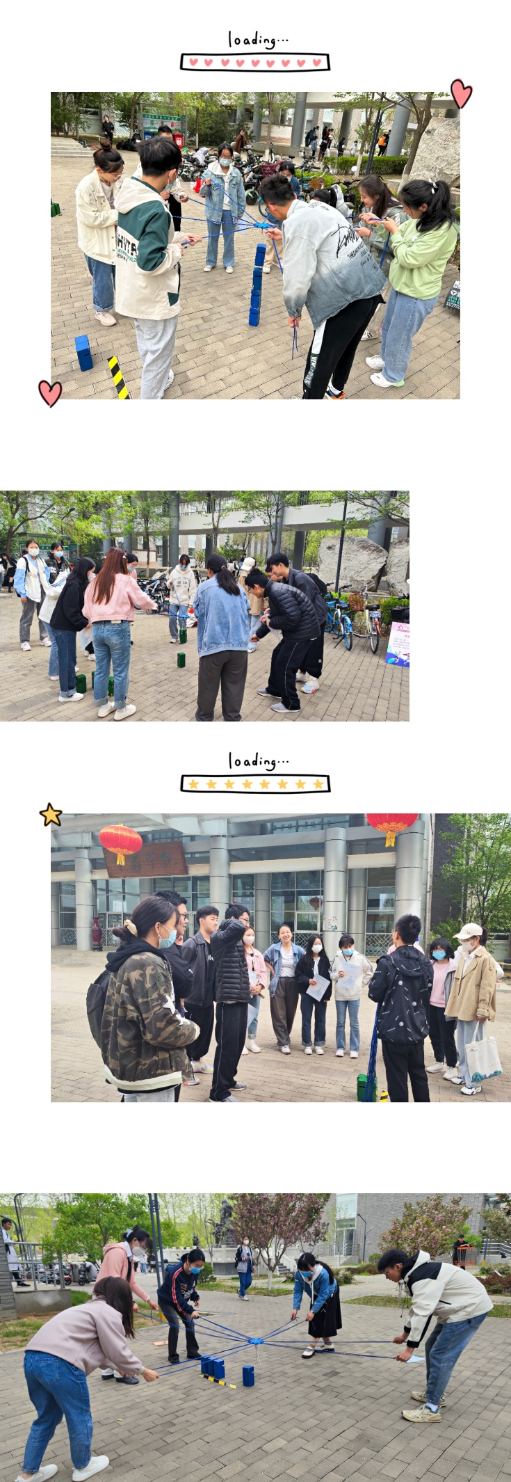 同学们成群结队,通力合作,