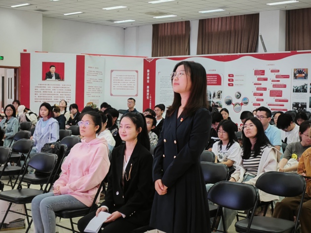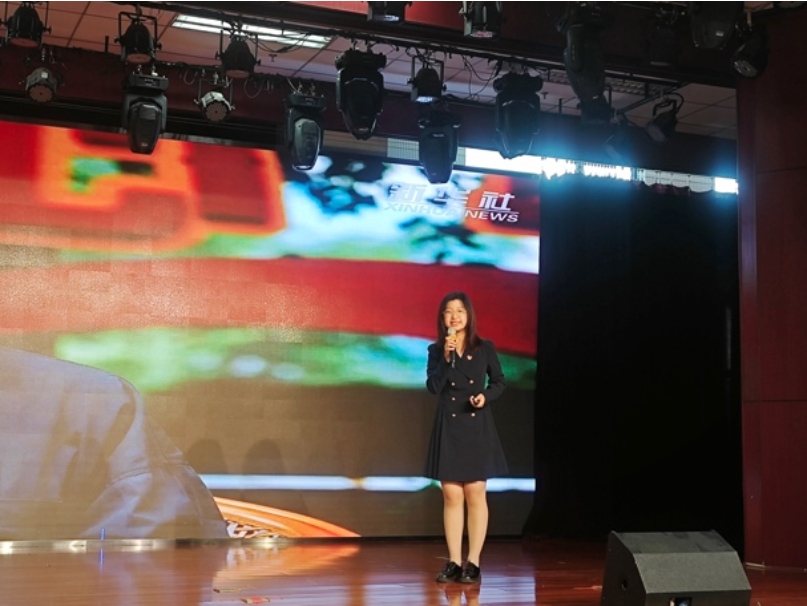 活动第一部分,学工部范颖老师对本次活动作开场发言。范颖老师对本次活动给予高度认可,认为活动开展的时间好、主题好、意义好,期望同学们能从榜样的故事里汲取前进的力量,为自己的人生点燃奋进的光芒。