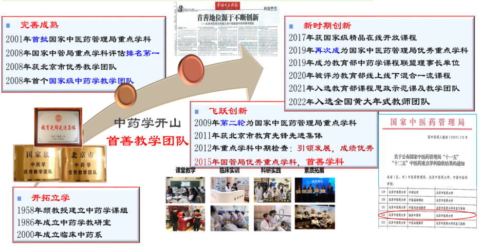 yl23455永利集团临床中药系原为中药学课程组,是新中国高等中药学教育的开山,由国医大师颜正华教授创立,至今已有64年历史。经过60余年传承积淀,临床中药学学科不断完善,形成以中药学为主体,安全性与有效性为侧翼的“一体两翼”课程群,而且中药学课程教学实践形成鲜明特色。培育出一批既深刻理解传统本草,又具备中药现代教研能力的优秀教学团队,是教育部首个国家级中药学教学团队。临床中药学现任学科带头人张冰教授,学术带头人颜正华教授。2001年临床中药学学科入选国家中医药管理局首批重点学科,在建设过程中多次被评为优秀重点学科。在中药学教育上做出突出贡献。