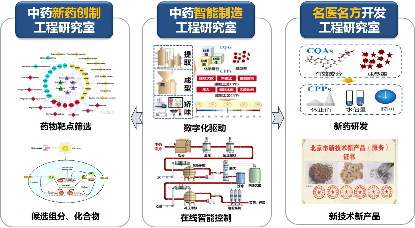 2.中药智能制造工程:基于智能制造工程,研究中药制造智能控制新技术,解决中药复方品种的品质问题,推动企业智能化变革,助力高质量发展;