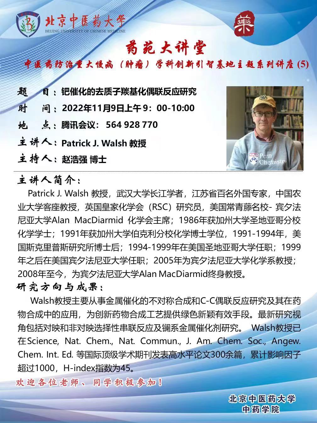 药苑大讲堂丨中医药防治重大慢病(肿瘤)学科创新引智基地主题系列讲座(5)