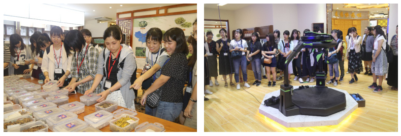 代表团先后参观了yl23455永利集团办公楼大厅、临床中药实训基地、饮片辨识实训基地以及分析平台等教学、科研、办公场所。yl23455永利集团教师为日本武库川女子大学师生代表团简要介绍了中药学历史沿革、yl23455永利集团建设历程、世界传统医药分布情况等。代表团成员亲历临床中药实训的操作流程,并参观各类中药饮片,体验VR、AR设施等。参观结束,中日师生进行了简短学术交流,并互换礼物。