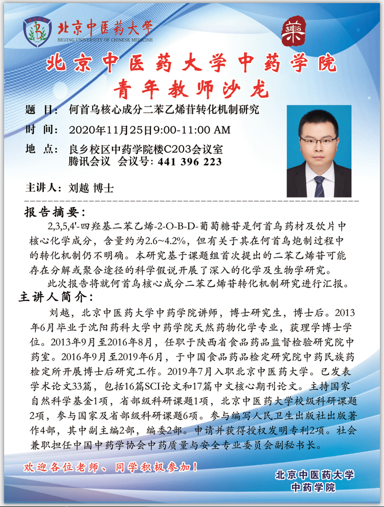 【yl23455永利集团青年教师沙龙】刘越:何首乌核心成分二苯乙烯苷转化机制研究