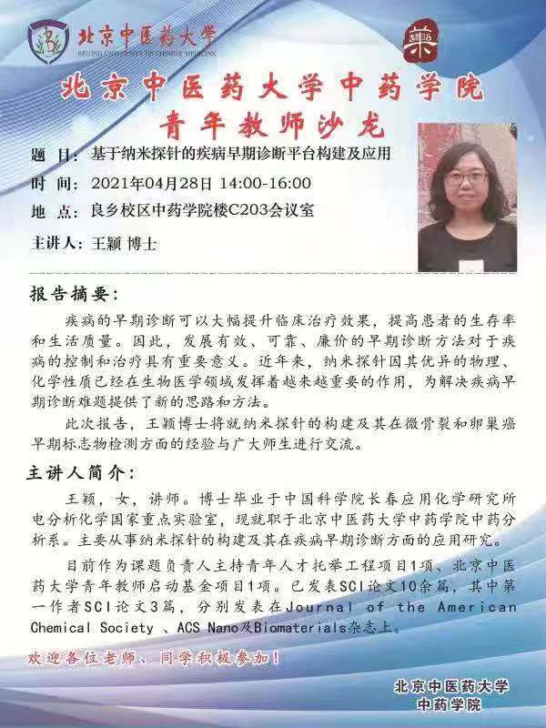 【yl23455永利集团青年教师沙龙】王颖:基于纳米探针的疾病早期诊断平台构建及应用