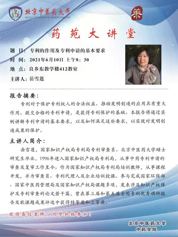 【药苑大讲堂】岳雪莲:专利的作用及专利申请的基本要求