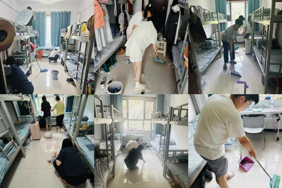 在完成各自宿舍的内务整理之后,延伸至宿舍楼内的公共区域。大家分工明确,在整个清扫过程中,同学们充分发扬了团结协作的精神,不怕脏、不怕累,认真细致地清理每一个角落。大家相互配合,默契无间,整个劳动过程井然有序,最终顺利且高效地完成了既定的劳动任务。在最后即将离别之际,同学们又整体进行了二次劳动大清扫,将基地宿舍区域恢复成刚开始到来时的模样。通过这两次的“宿舍焕新行动”,不仅提升了宿舍的卫生环境,更培养了员工们的劳动意识和团队合作精神,达到了预期的劳动教育效果。