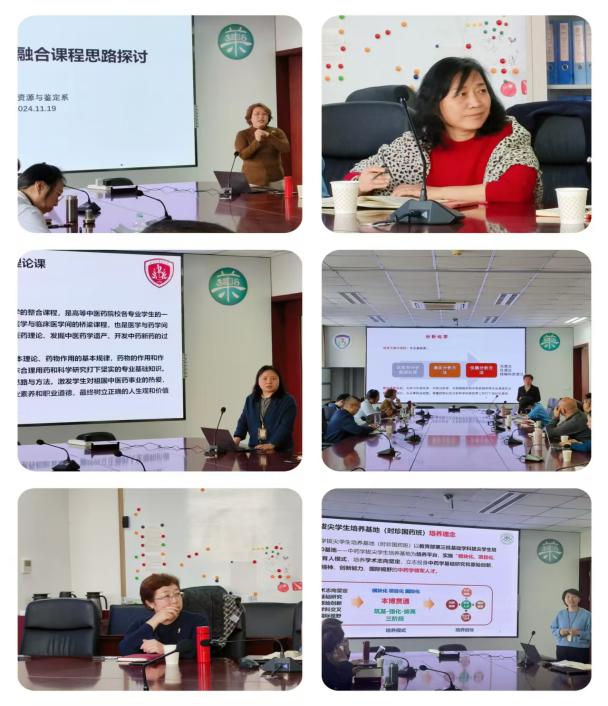 中药资源与鉴定系张媛老师汇报了《中药材学》的融合课程建设思路,拟打破传统学科界限,构建跨学科融合的模块化教学体系,强调将药用植物学、分子生物学、中药鉴定学、中药鉴定专论融合教学,以促进知识的系统性和连贯性。