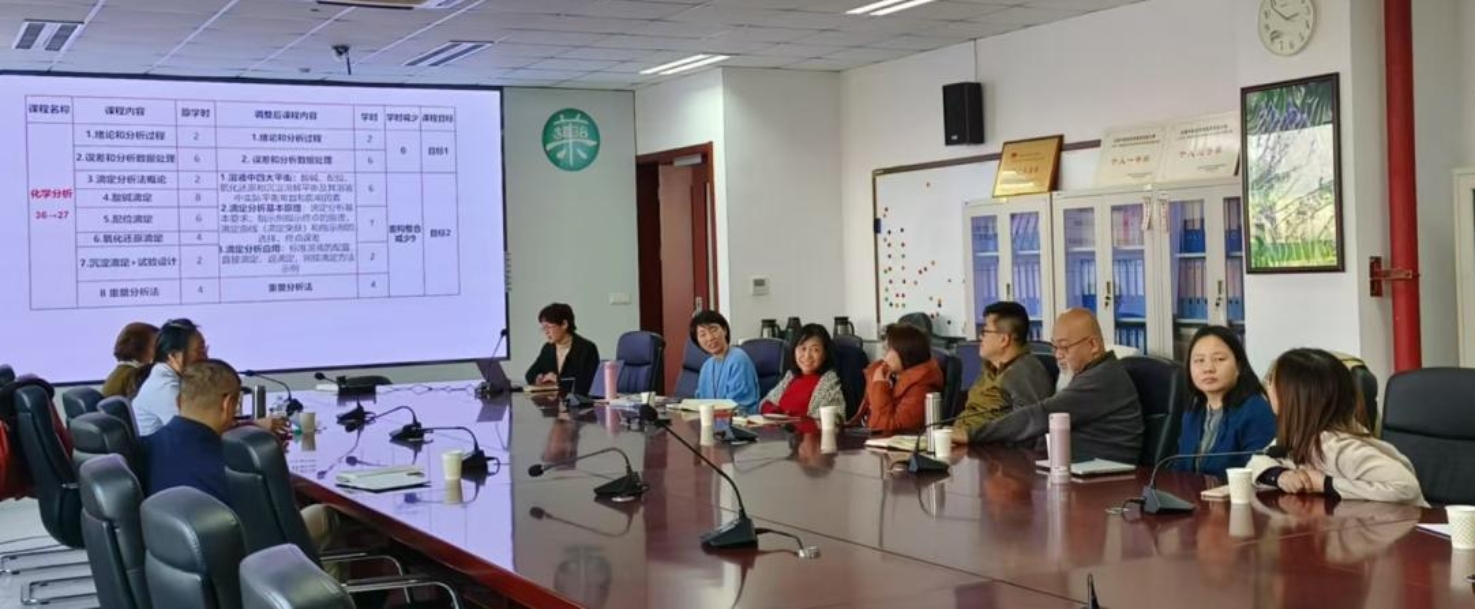 中药分析系詹雪艳老师汇报了《分析化学》整合课程建设情况,拟通过相关内容的教学为员工后续学习中药化学、中药分析学、中药炮制学和中药药剂学等专业课提供必要的分析知识,为从事药品检验、质量分析以及分析科学的研究等工作打下良好的基础。