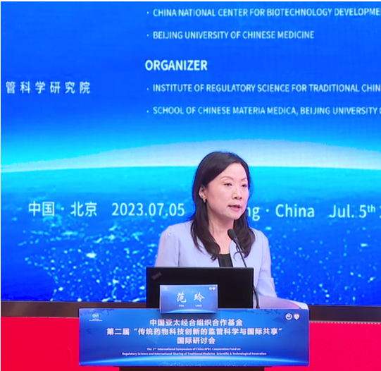 中国生物技术发展中心范玲副主任作大会致辞。范玲副主任指出,中国生物技术发展中心(以下简称“生物中心”)积极推动APEC框架下的多边科技与创新合作,代表中国参加APEC相关会议,表达中方意见。为了提升APEC经济体传统药物监管科学研究水平,促进各经济体传统药物及相关产业的发展,生物中心联合公司申请获批2021年度中国APEC合作基金“传统药物科技创新的监管科学与国际共享”项目,并于2022年11月8日共同组织召开第一届国际研讨会,取得较好成效。为更好地推动该项目实施,现与公司共同组织召开第二届“传统药物科技创新的监管科学与国际共享”国际研讨会,希望通过大会的持续举办,加强沟通、互有所学、寻求共识、探讨合作,共同促进APEC经济体传统医药经济的互利共赢和可持续发展。