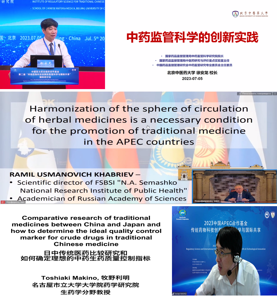 俄罗斯国家科公司Ramil Usmanovich Khabriev院士作了题为“Harmonization of the sphere of circulation of herbal medicines is a necessary condition for the promotion of traditional medicine in the APEC countries”(《传统药物流通领域的协调统一是促进APEC经济体传统药物发展的必要条件》)的报告,介绍了WHO传统药物发展战略以及欧盟国家医药产品流通的协调统一原则、协议以及法律框架。日本名古屋市立大学Toshiaki Makino(牧野利明)教授以“Comparative research of traditional medicines between China and Japan and how to determine the ideal quality control marker for crude drugs in traditional Chinese medicine”(《日中传统医药比较研究和如何确定理想的中药生药质量控制指标》)为报告题目,分享了日中传统医药的异同,并在中药生药质量控制指标方面提出了个人见解。
