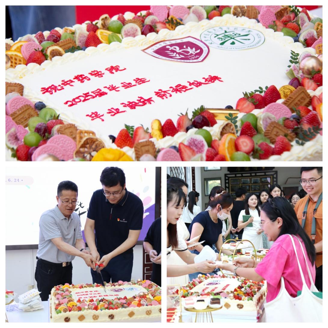 最后,在毕业生代表卜思彤、潘桃与本科生毕业年级辅导员曹放老师的歌声中,师生共享毕业蛋糕,分享毕业喜悦。