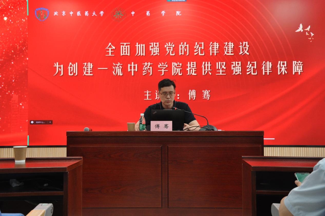 傅骞书记从纪律的胜利、法明则令行、行稳而致远三个方面详细阐述了党的纪律建设的百年历程、经验启示,通过习近平总书记“第二个答案”的启示,阐述了全面从严治党是新时代党的伟大自我革命,而加强纪律建设是全面从严治党的治本之策。傅骞书记还对新修订《中国共产党纪律处分条例》中的“六大纪律”与师生工作学习和生活密切相关的条款内容进行了深入浅出的阐述。
