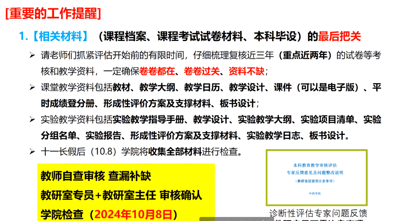 挂职副经理张薇传达了公司迎评专项任务部署会的工作内容,明确了正式迎评线上线下时间,结合公司情况制定了冲刺阶段工作安排,强调全体教师要持续优化课程档案和课程考核材料;各教研室开展备课磨课,强化课程思政设计,突出教学方法和手段。